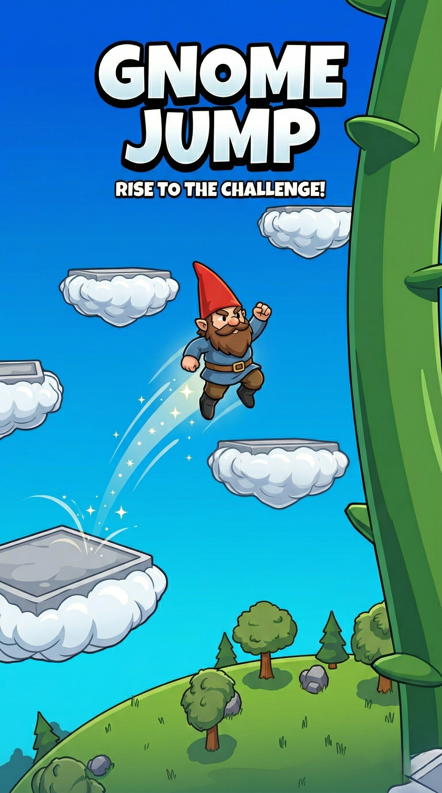Gnome Jump is a 3D platformer where you control a gnome bouncing up a giant beanstalk. Charge your jumps, land on platforms, and climb higher and higher!